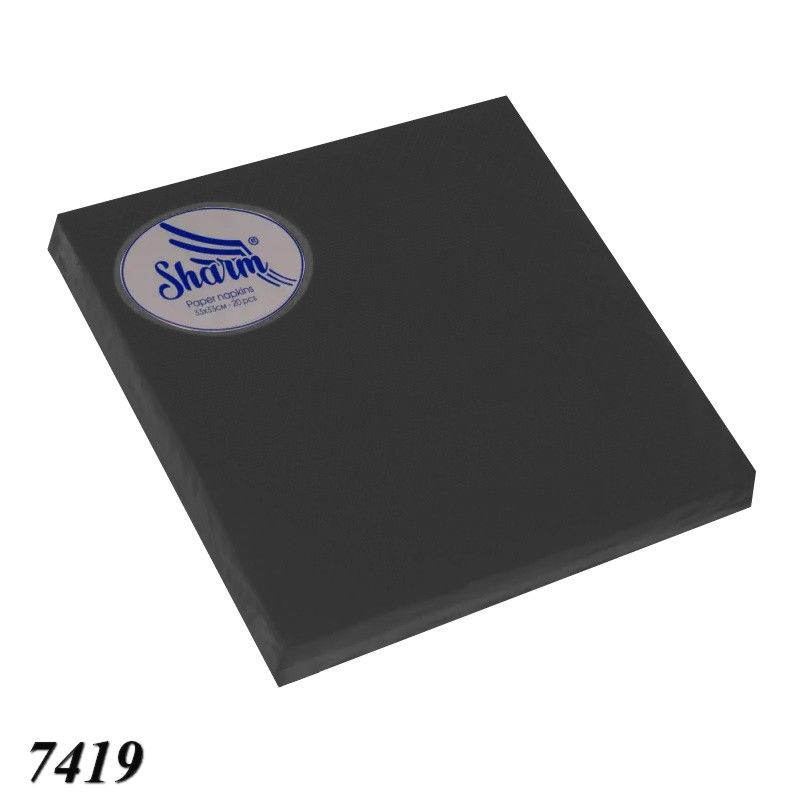 Серветки паперові бренду Sharm, упаковка 20 шт, двошарові, чорного кольору. Ідеально підходять для сервірування столу під час вечірок, тематичних заходів, ресторанних чи домашніх подій. Завдяки двом шарам серветки мають підвищену міцність та здатність вбирати вологу, що робить їх практичними і комфортними у використанні. Колірна глибина чорного створює елегантний контраст і додає вишуканості оформленню столу.