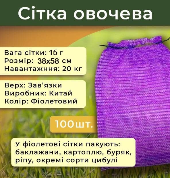Фіолетова овочева сітка розміром 38х58 см виготовлена з довговічного поліпропілену з дрібним вічком, що забезпечує відмінну вентиляцію та захист вмісту від механічних пошкоджень. Яскравий фіолетовий колір допомагає легко сортувати продукцію за видами. Така сітка підходить для зберігання, транспортування та виставки на реалізацію овочів і фруктів.