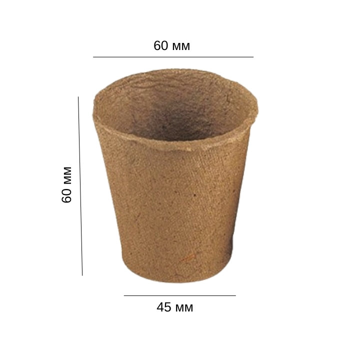 Виготовлений з природних матеріалів - торфу (70%) і первинної деревини (картон, 30%), які розкладаються протягом місяця і збагачують грунт поживними речовинами. Орієнтовний об'єм до 150 мл.