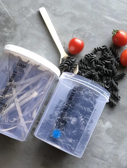 Практична ємність для сипучих продуктів допоможе підтримувати порядок на кухні та зберегти свіжість продуктів. Завдяки герметичній кришці продукти не вбирають сторонніх запахів і захищені від вологи. Підходить для круп, макаронів, цукру, борошна та інших харчових продуктів.