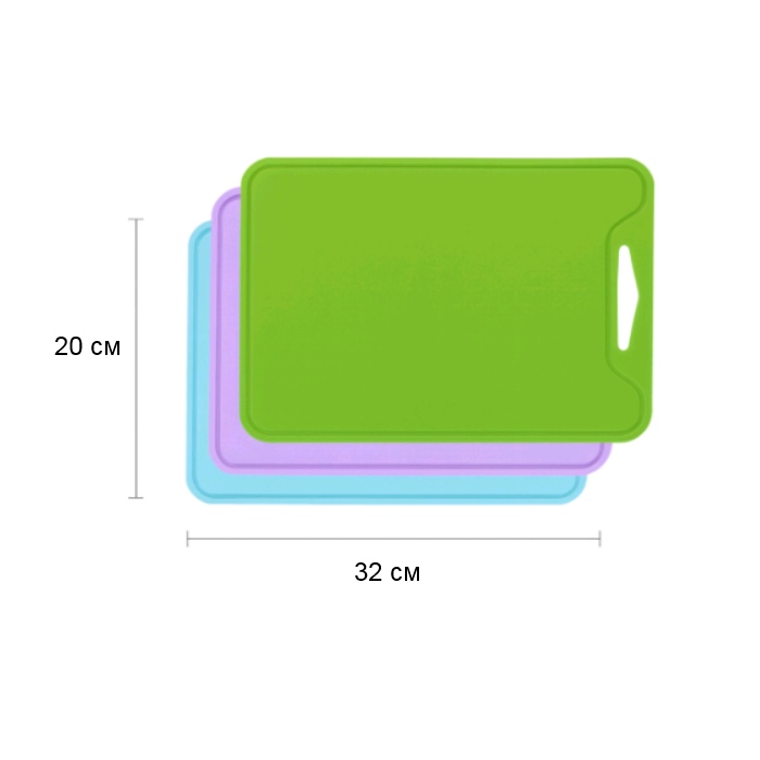 Пластикова дошка для нарізки розміром 20х32 см — компактний та практичний кухонний аксесуар для швидкого і гігієнічного приготування їжі. Виготовлена з міцного харчового пластику, вона легко миється, не вбирає запахи і стійка до пошкоджень. Ідеально підходить для нарізання овочів, фруктів, м’яса та сиру. Компактний розмір дозволяє зручно зберігати дошку навіть у невеликій кухні.