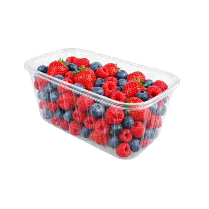 Одноразовий прозорий контейнер-фруктовниця "Ківі", 1950 мл (1 кг) без кришки — легка та зручна тара для фасування і продажу ягід, фруктів, овочів, зелені та дрібної випічки. Виготовлений із прозорого харчового PET-пластику, що дозволяє покупцю бачити вміст. Контейнер добре підходить для викладки товару в супермаркетах, на ринках і в магазинах. Можливе використання з харчовою плівкою або окремо підібраною кришкою.