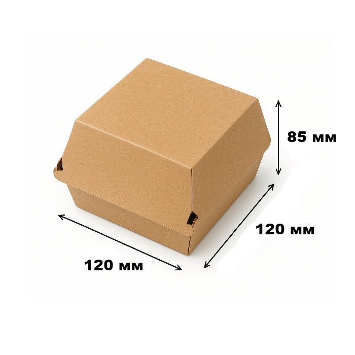 Коробка коричнева для бургера розміром 12×12×8,5 см виготовлена з екологічного картону, безпечного для контакту з харчовими продуктами. Призначена для пакування бургерів, сендвічів, картоплі фрі та інших фастфуд-страв. Має зручну конструкцію з кришкою, добре утримує форму та захищає їжу від забруднень і втрати тепла. Підходить для кафе, ресторанів, фастфуд-закладів та доставки їжі.