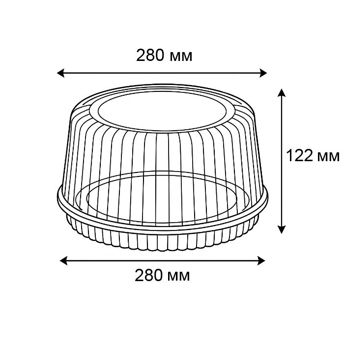 Одноразовий контейнер для торта, 1500 г — зручна і практична упаковка для транспортування та зберігання тістечок, торта або круглих виробів. Виготовлений із прозорого харчового PET-пластику, який дозволяє вигідно презентувати вміст. Має надійну фіксацію кришки, що забезпечує герметичність і захист від деформацій під час транспортування. Ідеально підходить для кондитерських, пекарень, супермаркетів і доставки.