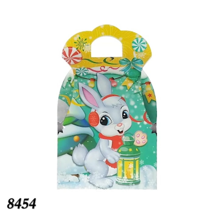 Подарункова новорічна коробка «Сумка Кролик» об’ємом 850 г — чудовий вибір для упаковки солодощів, невеликих сувенірів або тематичних подарунків. Завдяки яскравому дизайну із веселим кроликом коробка виглядає по-особливому святково та неодмінно сподобається дітям.