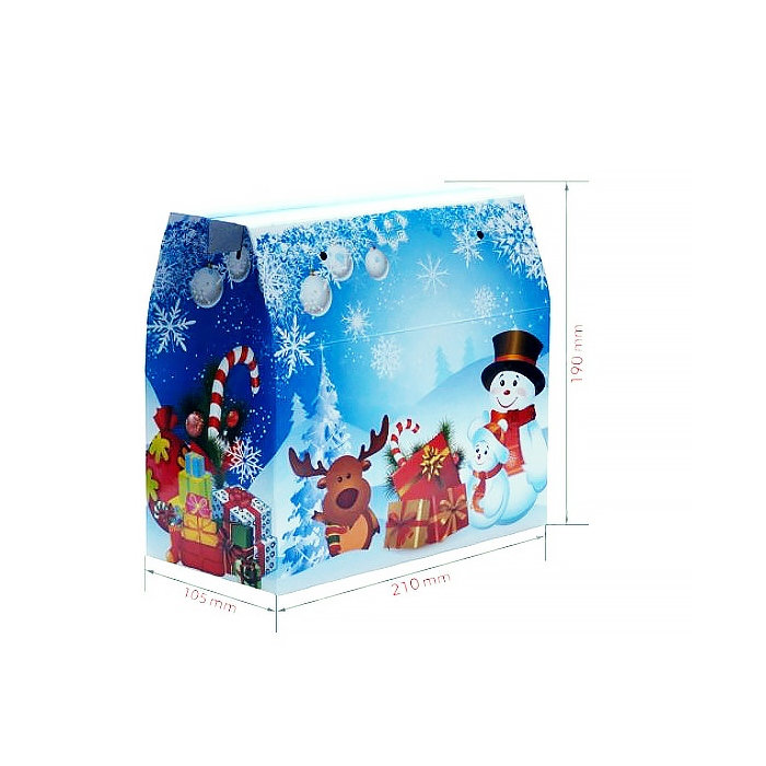 Новорічна подарункова коробка "Саквояж синій" 2000 г — велика та стильна святкова упаковка для солодощів і подарунків. Виконана у формі саквояжа з яскравим синім дизайном та новорічними елементами, що створюють атмосферу свята. Містка та зручна, підходить для цукерок, печива, сувенірів та інших приємних сюрпризів.