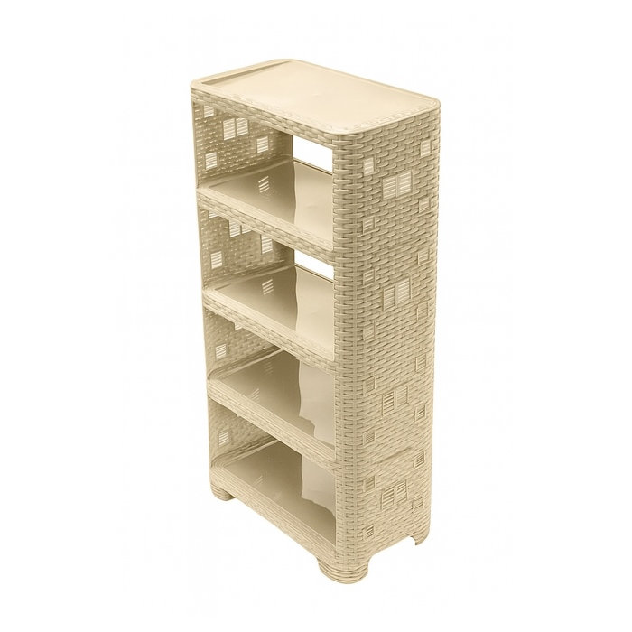 Этажерка Ротанг ПГ 5 секций 51×29×110 см — практичная и вместительная пластиковая этажерка с дизайном под ротанг, отлично подходящая для организации пространства дома, на кухне, в ванной, на балконе или даче. Имеет 5 глубоких секций, которые удобно использовать для хранения продуктов, бытовой химии, полотенец, игрушек и других вещей. Благодаря размерам 51×29×110 см конструкция вмещает много предметов, не занимая при этом много места. Лёгкая, устойчива к влаге и легко моется, что делает её идеальным вариантом для любого интерьера.
