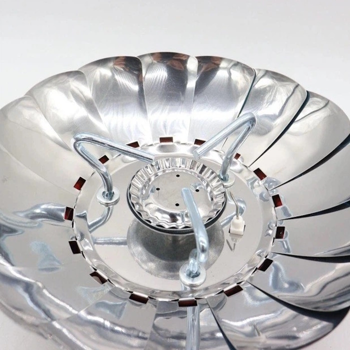 Лепестковая конструкция плиты надежно защищает пламя от порывов ветра.