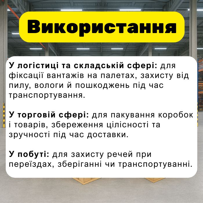 Стрейч пленка часто используется для упаковки грузов перед последующей транспортировкой или хранением в складском помещении.