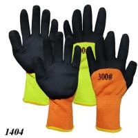 Изготовлены из трикотажной акриловой ткани флюоресцентного цвета, бесшовные, утепленные (махровые с внутренней стороны). Покрыты шершавым латексом черного цвета и отделаны резинкой на манжетах. Устойчивы к истиранию, прокалыванию, разрывам. Перчатки подходят для работы в зимних условиях.