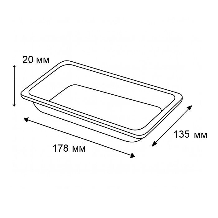 Одноразовый лоток-тарелка № Н-2 "Подкладка" размером 178x135x20 мм - удобное решение для упаковки и выкладки мясной, рыбной, овощной продукции или готовых блюд. Изготовлен из легкого гигиенического материала, пригодного для контакта с пищевыми продуктами. Имеет крепкую конструкцию и оптимальную глубину для надежной фиксации содержимого. Часто используется в супермаркетах, рынках, кафе, заведениях быстрого питания, а также для доставки еды.