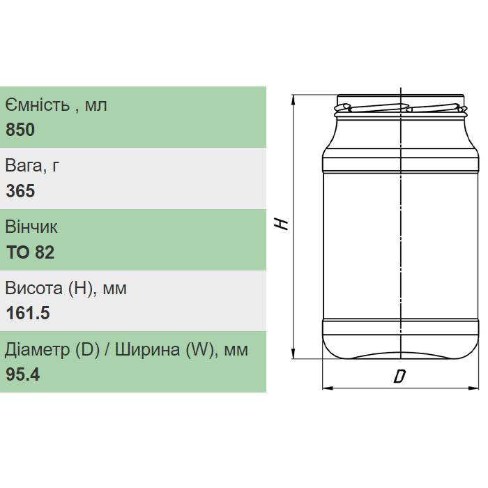 Стеклянная банка объемом 850 мл со стандартным венчиком ТО 82 мм. Изготовлен из пищевого прозрачного стекла, выдерживающего многократную стерилизацию и пастеризацию. Цилиндрическая форма позволяет экономить место на полке и аккуратно выкладывать заготовки. Идеально подходит для джемов, соусов, меда, кондитерских кремов, солений и дегустационных образцов. Банк обеспечивает герметичное закрытие винтовой крышкой и сохраняет вкусовые и ароматические свойства продукта.