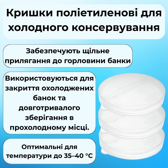 Прозрачная крышка серии предназначена для герметичного закрывания банок во время горячего консервирования. Изготовлен из высококачественного пищевого полиэтилена, устойчивого к температурным нагрузкам. Обеспечивает надежное уплотнение и защищает заготовки от воздуха и пыли.