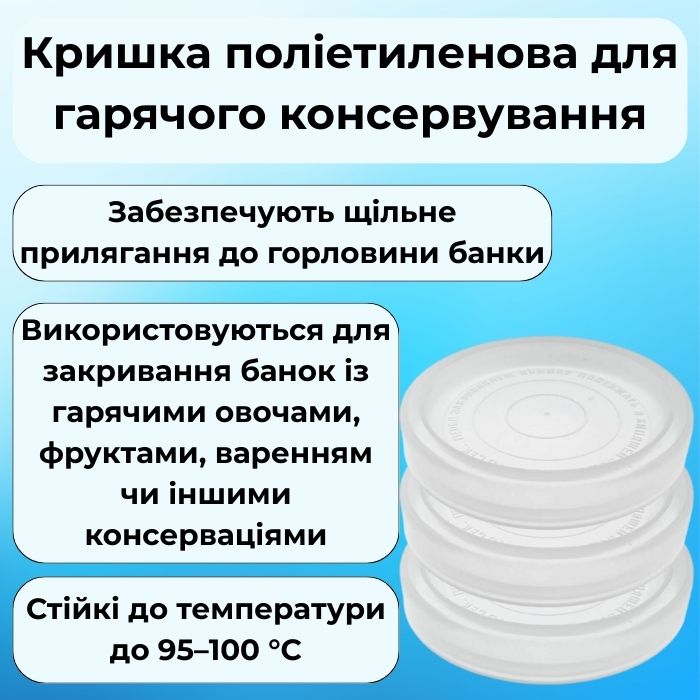 Крышки для консервирования изготавливаются из пищевых полимеров, которые в течение многих лет эксплуатации не изменяют своих качеств, не влияют на вкус консервированного продукта. Крышка для консервирования выполнена из толстослойного пластика, имеет рельефную форму, благодаря которой надежно и герметично закатывает банку, создавая внутри вакуумную среду. Срок годности консервированного продукта зависит от типа, состава, способа и времени обработки.
