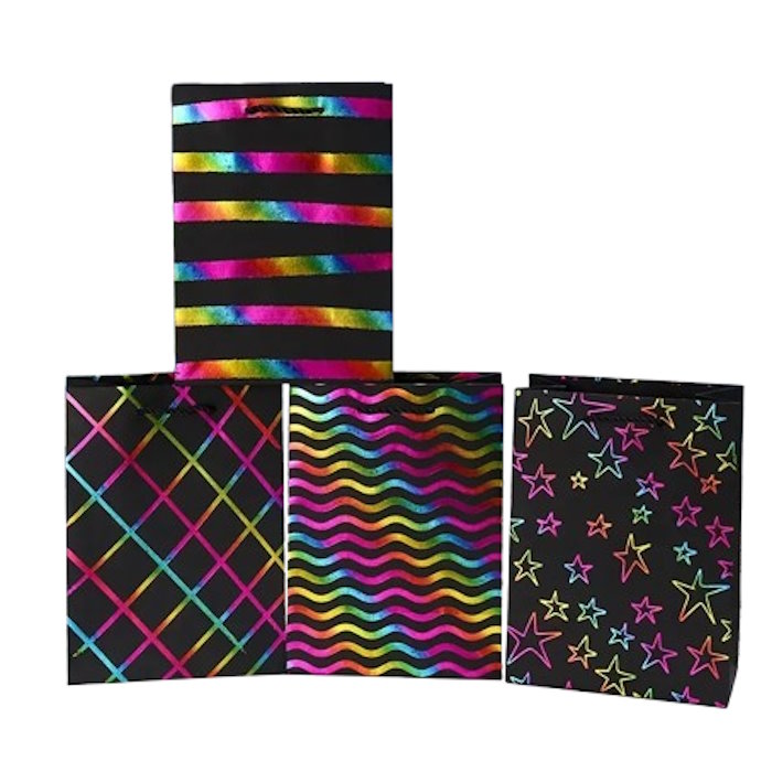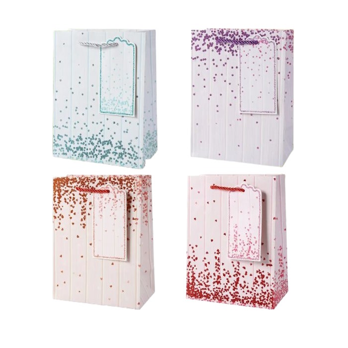 Большой подарочный пакет размером 30×42 см отлично подойдёт для упаковки объемных подарков: одежды, игрушек, техники, косметических наборов или книг. Выполнен из плотной бумаги, оснащён прочными веревочными ручками.