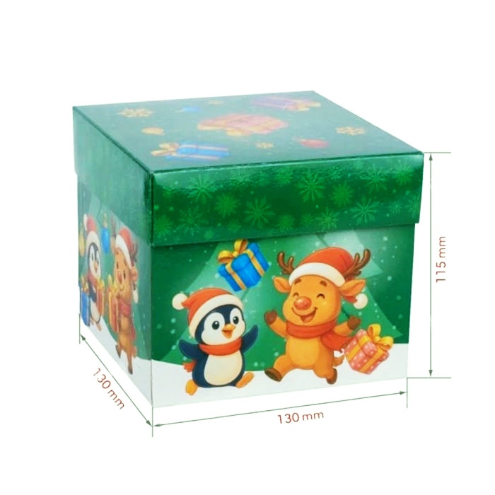 Новогодняя коробка "Кубик" зеленого цвета для сладких подарков. Емкость до 700 г конфет. Плотный картон, яркий праздничный дизайн и удобная форма делают ее отличным выбором для детских и корпоративных подарков.