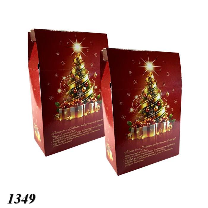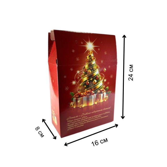 Новогодняя коробка в форме сумки, красного цвета для сладких подарков весом до 800 г. Удобная в использовании, изготовлена из плотного картона и украшена праздничным зимним дизайном. Идеально подходит для детских и корпоративных подарков.