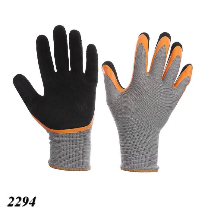 Перчатки изготовлены из бесшовной прочной нейлоновой основы с двойным покрытием латекса: первый слой – вспененный латекс 3/4, второй слой – вспененное латексное покрытие на пальцах, обеспечивающее более высокий коэффициент сопротивления к истиранию в области пальцев.