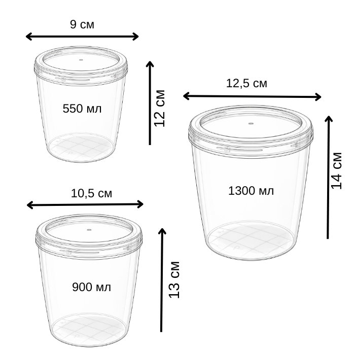 Набор круглых пищевых контейнеров Twist из трех штук – практичное решение для хранения продуктов разного объема. В комплекте: 550 мл, 900 мл и 1300 мл – оптимально для готовых блюд, салатов, заготовок, сыпучих продуктов и перекусов. Закрученные крышки Twist обеспечивают герметичное закрывание, защищают от протечек и посторонних запахов. Контейнеры изготовлены из безопасного пищевого пластика, легко моются и подходят для использования в холодильнике и микроволновке.