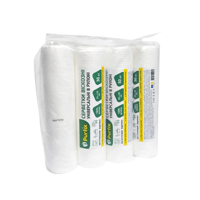 Салфетки вискозные в рулоне Purfix, 30 шт – практичные и прочные салфетки для ежедневной уборки на кухне, в ванной комнате и других помещениях. Изготовлены из вискозы, хорошо впитывают влагу, не оставляют ворса и подходят для влажной и сухой очистки различных поверхностей. Удобный рулонный формат позволяет легко отрывать салфетки по перфорации.