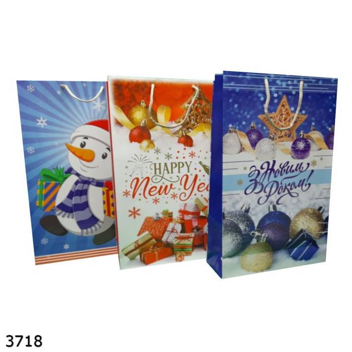 Новогодние бумажные пакеты, лучше всего подойдут для оформления подарка разного размера и вида, они прочные и удобные. А также имеют полноцветную печать, с разнообразными новогодними изображениями.